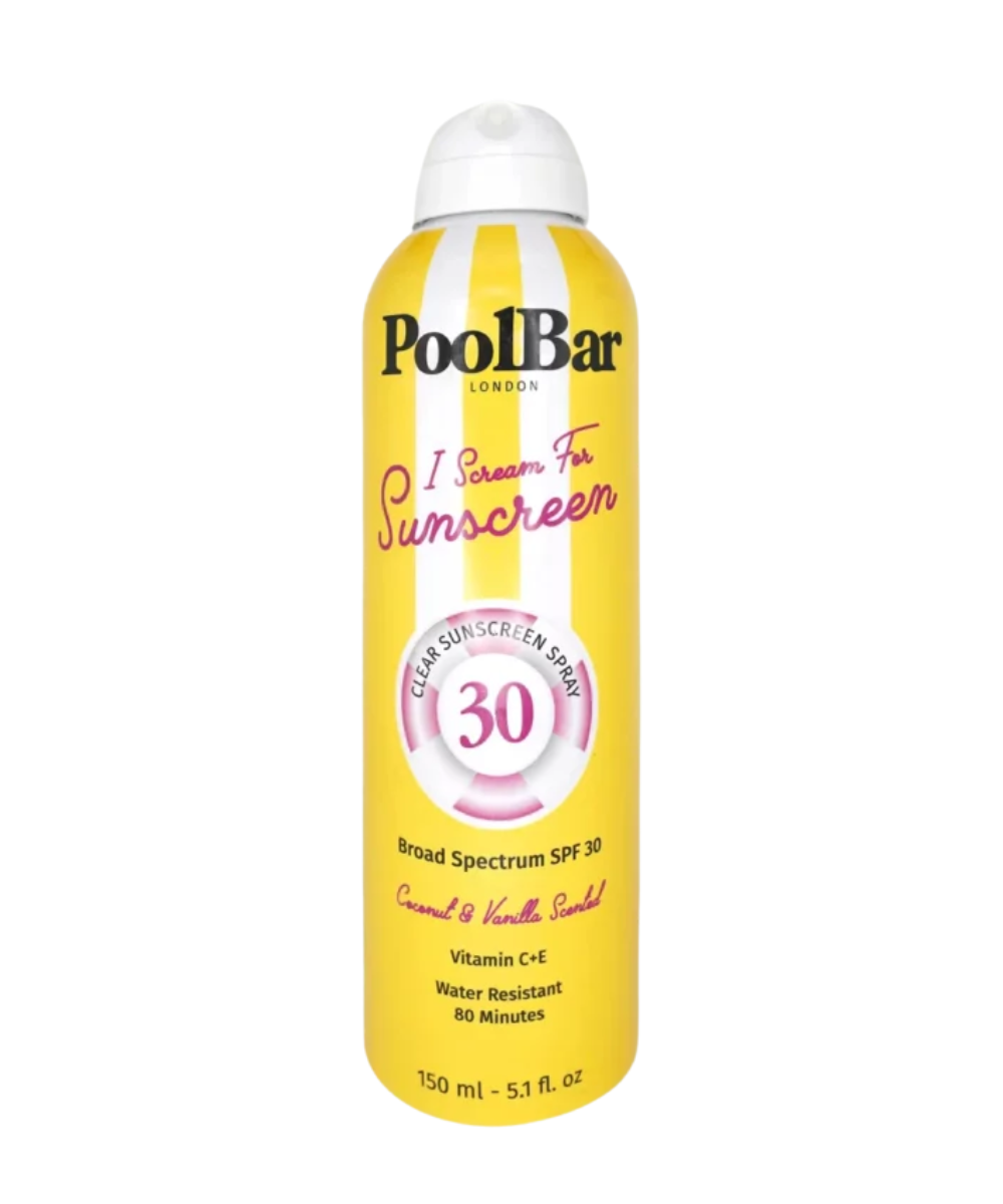 PoolBar London Clear Sunscreen Spray delivers effortless sun protection with broad spectrum SPF 30 in...