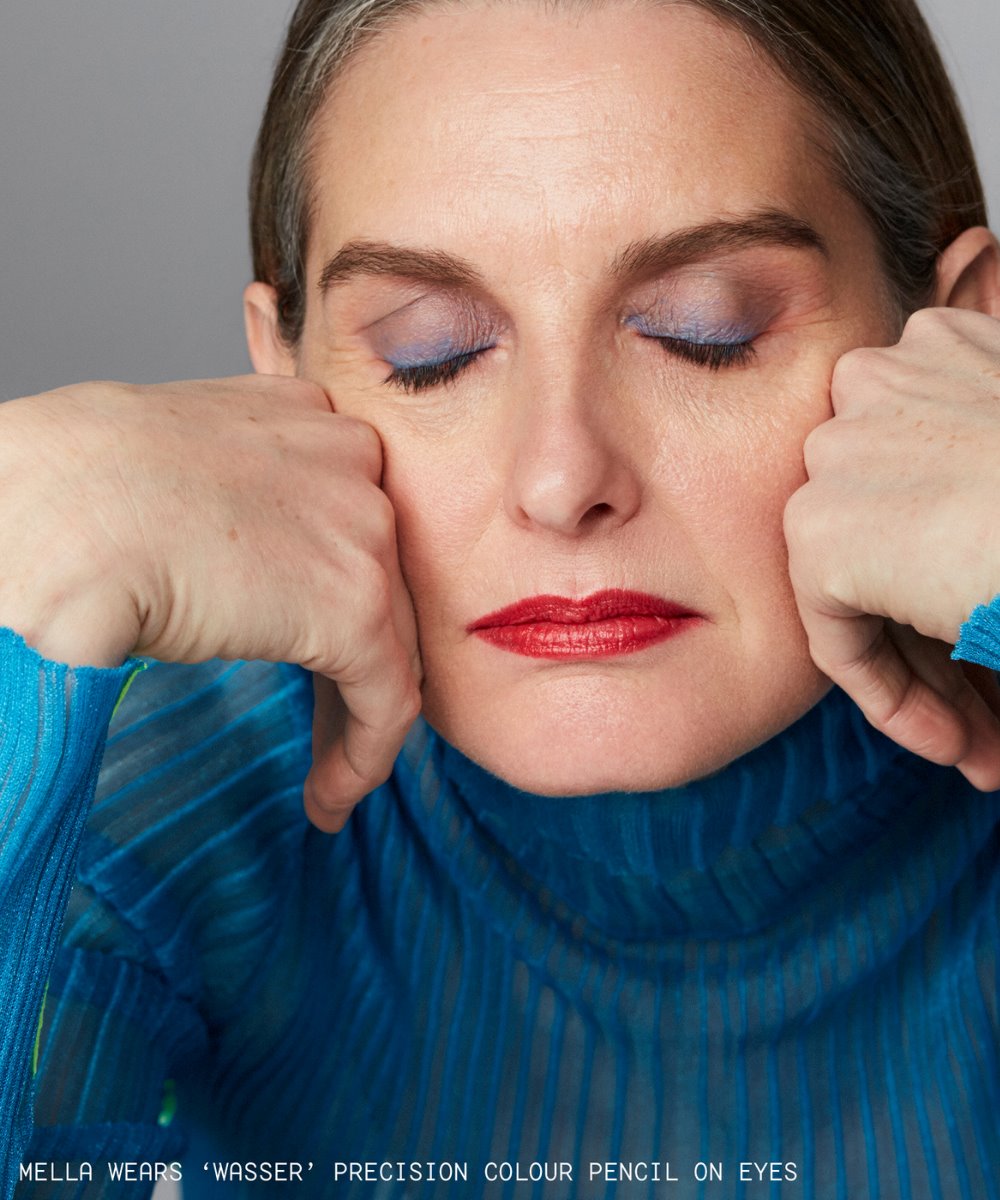 I love how the blue pencil [shade: Wasser] makes my brown eyes pop and I use the wine red shade [Bor] for my lip and cheek when I want that wine stained effect.