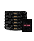 مناسب لجميع أنواع الشعر. حرير خالص 100%. يحتوي الطقم على 5 ربطات شعر.