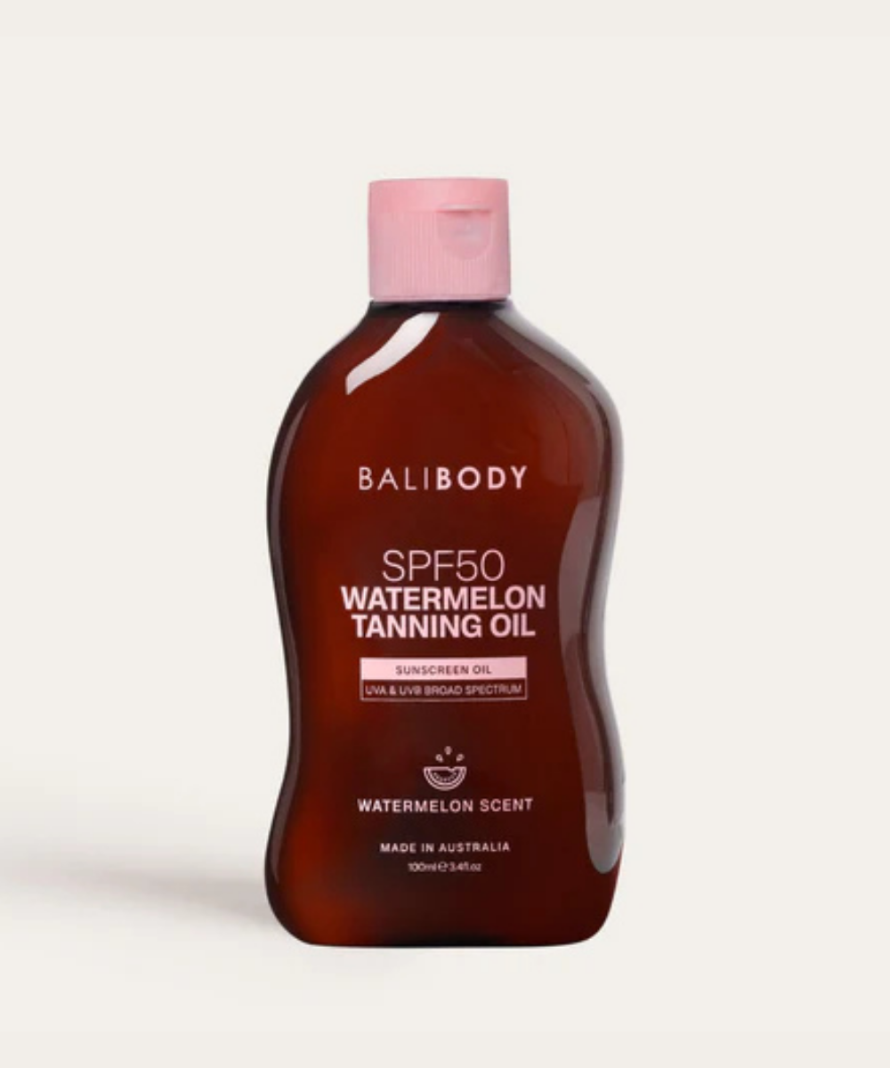 The Watermelon Tanning Oil helps the skin achieve a healthy, glowy tan with SPF50+ UVA...