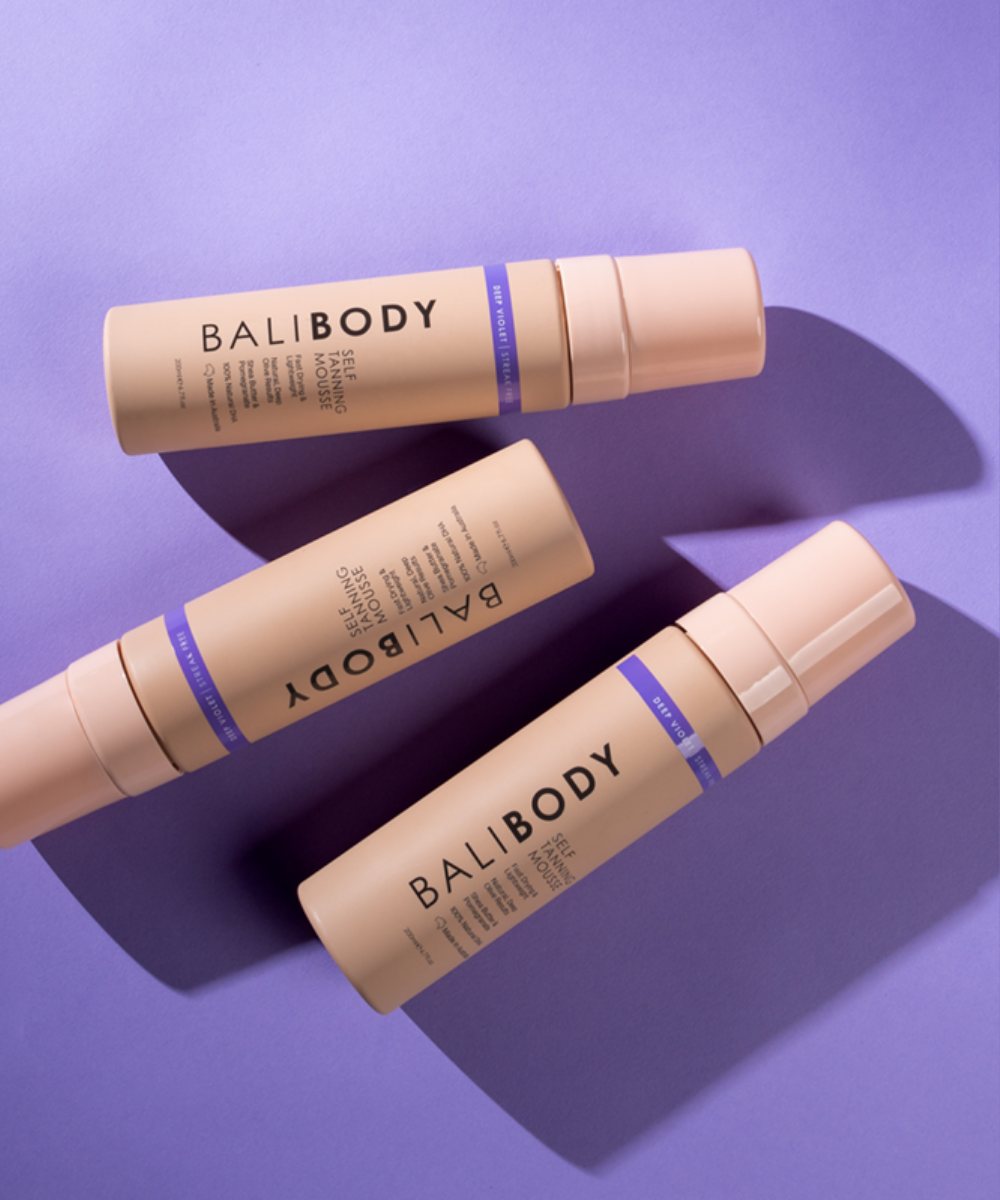 The Deep Violet Tanning Mousse achieves an ultra-natural, dark tan with flattering olive undertones. Its namesake violet base eliminates yellow and orange tones, ensuring a neutral, rich chocolate tan.
